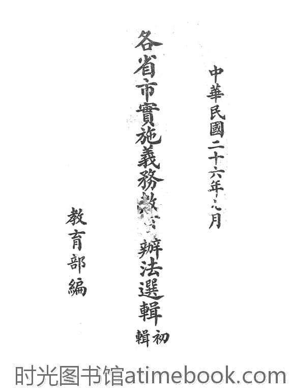 | 网盘路径:/时光图书馆珍藏系列/书籍文件/老图书/《各省市实施义务教育办法选辑初辑》电子版合集.db | ||