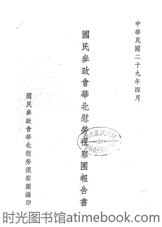 | 网盘路径:/时光图书馆珍藏系列/书籍文件/老图书/《国民参政会华北慰劳视察团报告书》电子版合集.db | ||