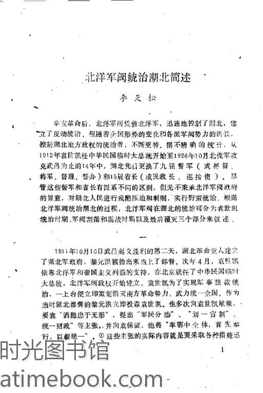 | 网盘路径:/时光图书馆珍藏系列/书籍文件/老图书/《湖北文史资料_1989年第2辑_总第27辑_北洋军阀统治湖北》电子版合集.db | ||