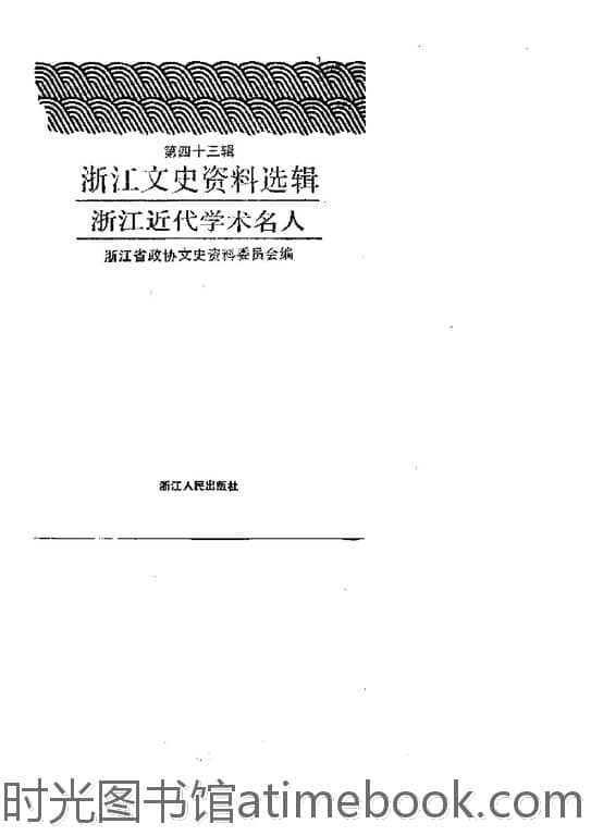| 网盘路径:/时光图书馆珍藏系列/书籍文件/老图书/《浙江文史资料选辑_第43辑(浙江近代学术名人)》电子版合集.db | ||
